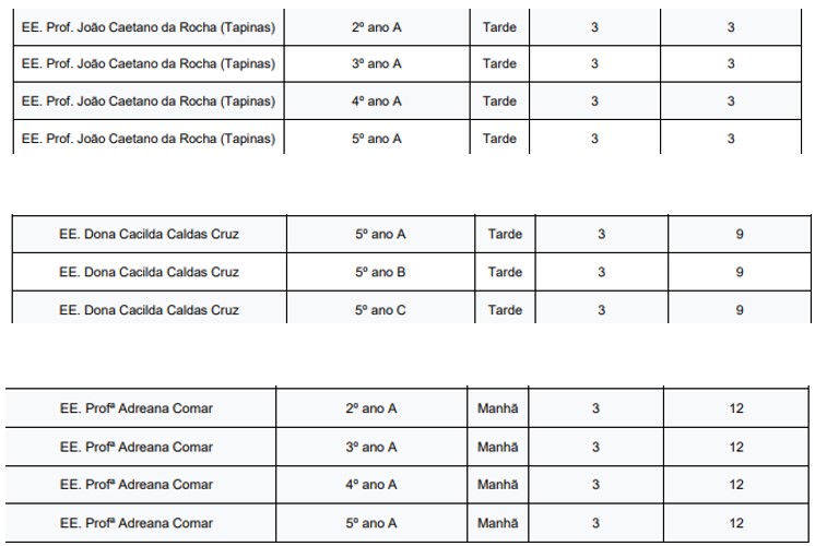 O Dirigente Regional de Ensino da Unidade Regional de Taquaritinga, torna público a relação dos candidatos classificados para as vagas disponíveis no Processo