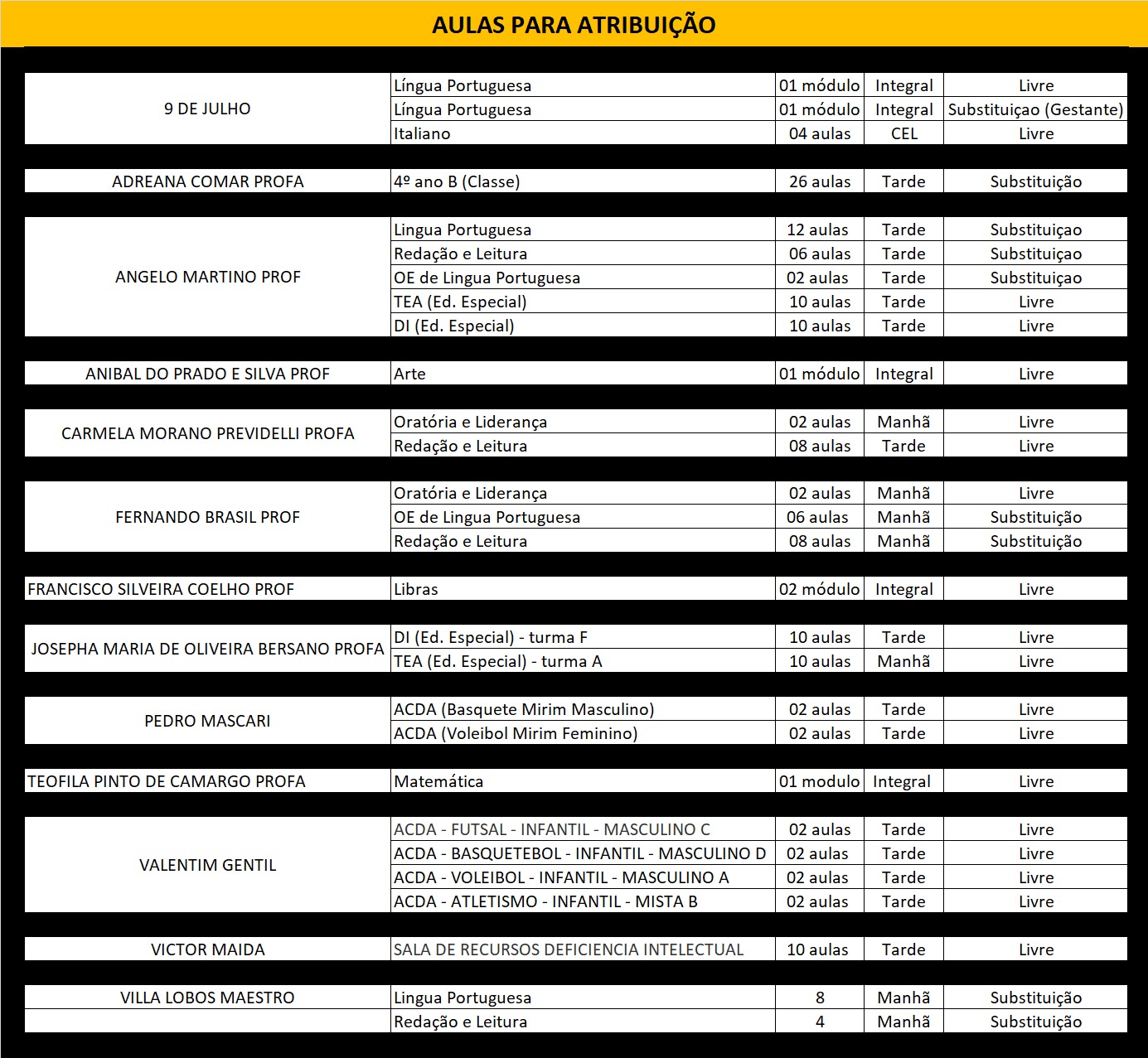 01 (uma) vaga – PEC Educação Especial.